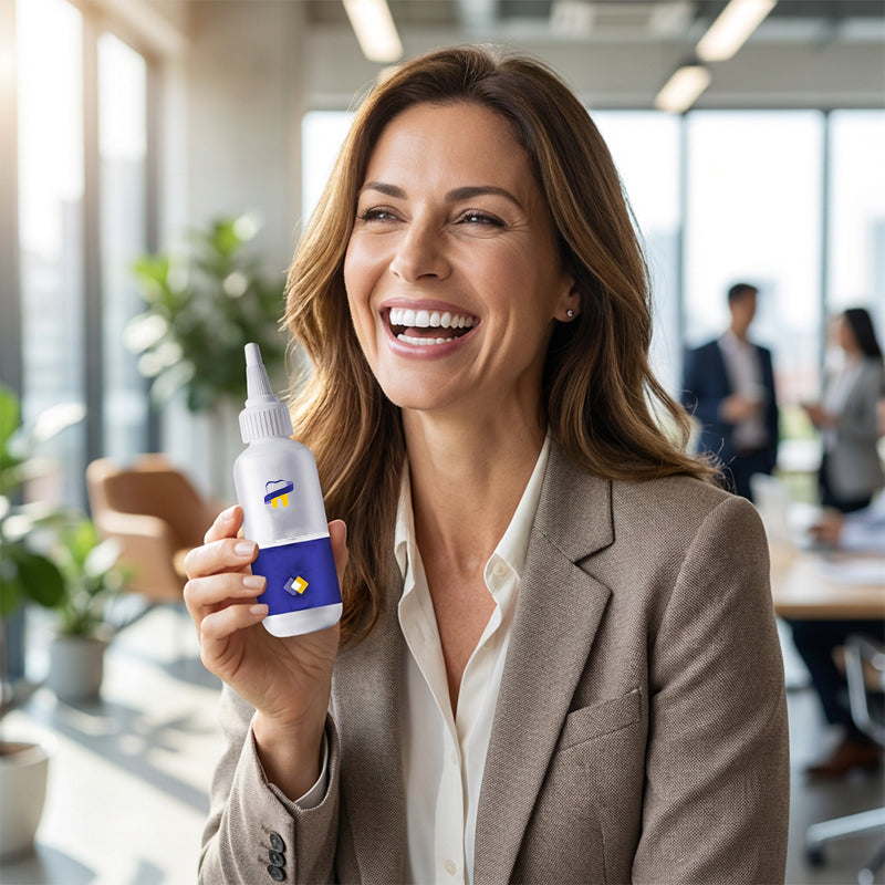 ZAAWANSOWANA KOREKTA KOLORU - Wykorzystuje fioletowe pigmenty do neutralizacji żółtych przebarwień na zębach, odsłaniając widocznie jaśniejszy uśmiech już po pierwszym użyciu. Działa jak korektor dla Twoich zębów, dając natychmiastowy zastrzyk pewności siebie.