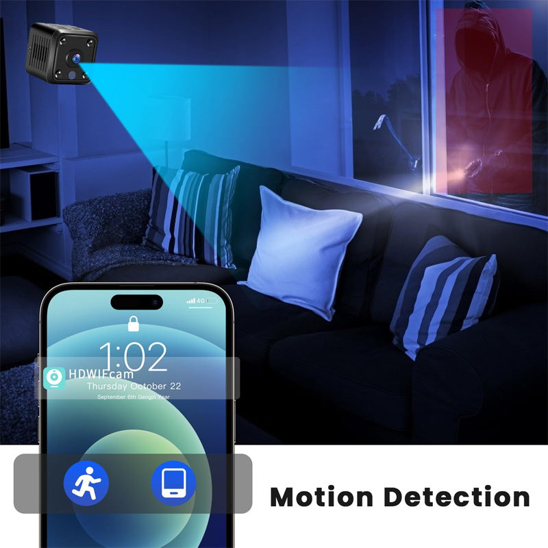 Przyjazna dla użytkownika obsługa – Skonfiguruj w kilka minut: włącz minikamerę, połącz się z Wi-Fi i dodaj do aplikacji. Obsługuje do 128 GB lokalnej pamięci na karcie pamięci, która automatycznie zastępuje stare filmy, 30 dni bezpłatnego przechowywania w chmurze i łatwy dostęp z telefonu.