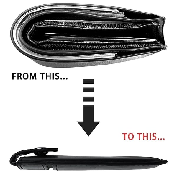 Wymiary 4" x 2,7" x 0,47" sprawiają, że z łatwością mieści się w przedniej i tylnej kieszeni.