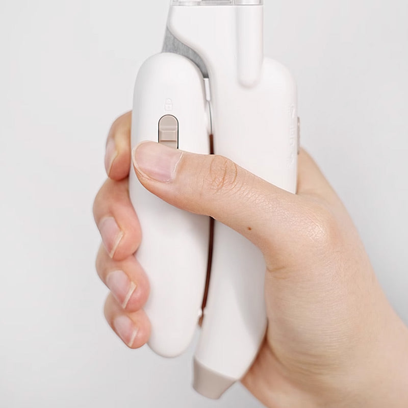 Przesuwna blokada – odblokowywanie i blokowanie poprzez przesuwanie, zmniejszając objętość produktu, gdy nie jest używany i zapobiegając przypadkowym skaleczeniom. Przesuwna blokada ułatwia przechowywanie i przenoszenie obcinaczek do pazurów dla psów i kotów.