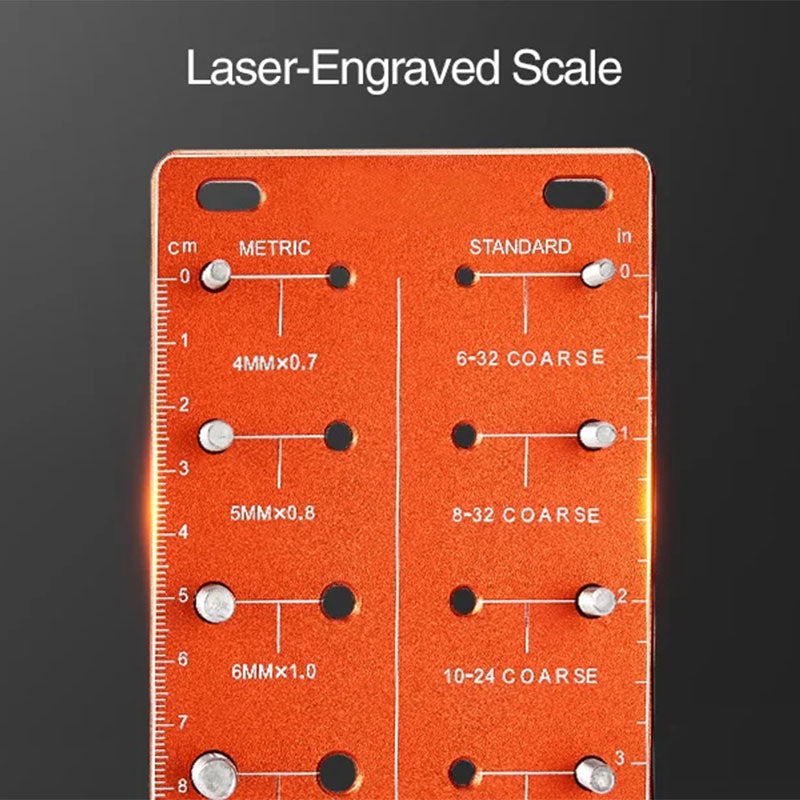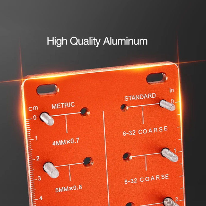 DOSKONAŁA JAKOŚĆ - Przyrząd do identyfikacji śrub i nakrętek jest wykonany z grubego stopu aluminium i gwintu ze stali nierdzewnej SUS304 o dużej twardości, bardzo wytrzymały i dobrze wykonany.