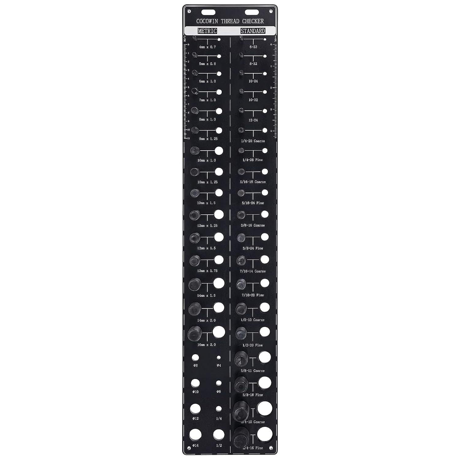 SZEROKI ZAKRES WYKRYWANIA ROZMIARÓW — dzięki 28 różnym rozmiarom nasz sprawdzacz gwintów nakrętek i śrub doskonale nadaje się do identyfikacji 14 rozmiarów gwintów metrycznych i 14 rozmiarów gwintów standardowych. Jest to kompleksowe narzędzie do szybkiej identyfikacji odpowiedniego rozmiaru i skoku gwintu.